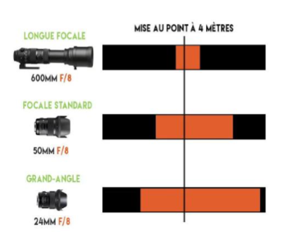 Plus la focale est courte (ex : 24 mm)plus la PDC est grande.